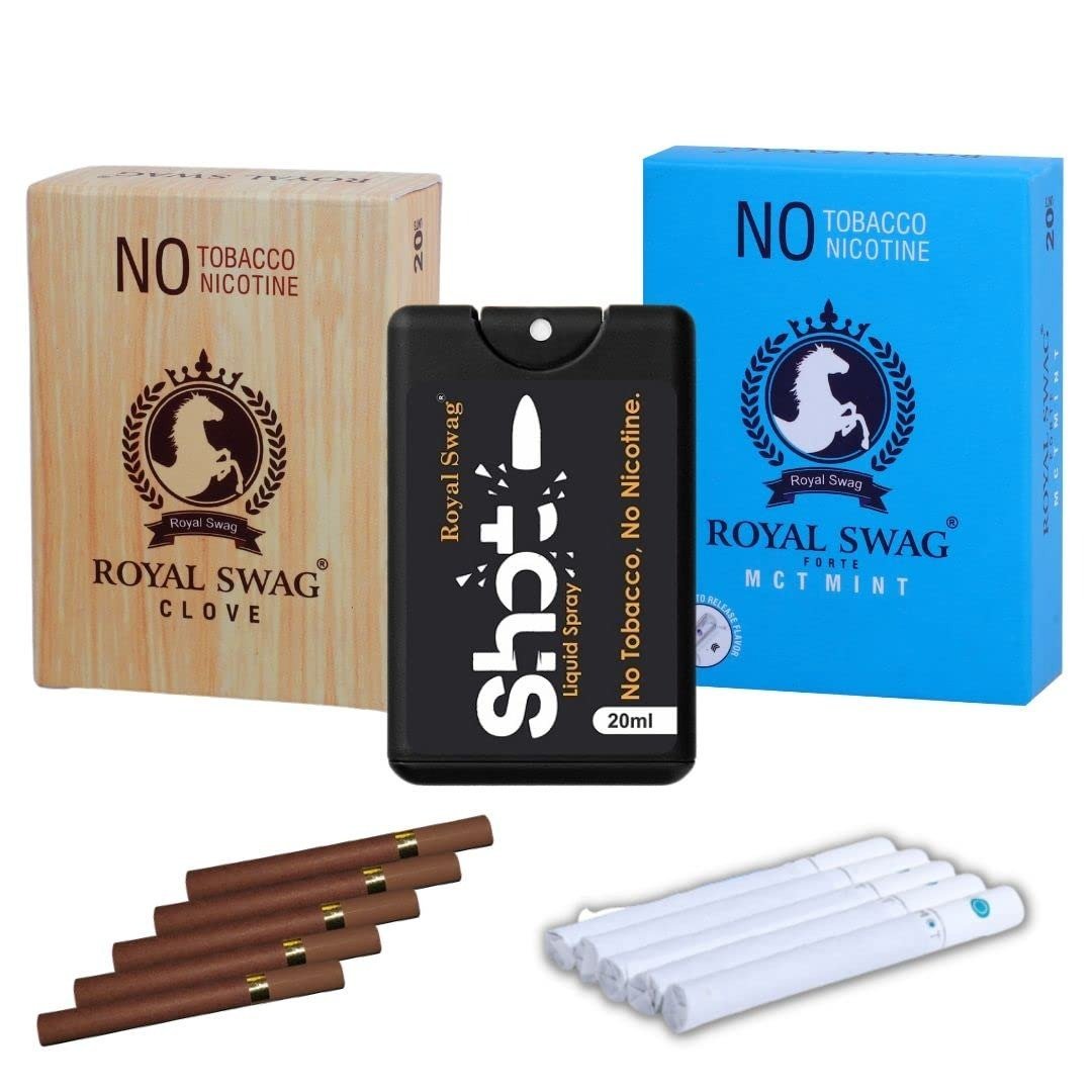 ROYAL SWAG Herbal Cigarette Mint, Clove Flavoured (40 Sticks) 100% NO Nicotine & NO Tobacco – (Smoking Cessation) With 100% Natural 20ML Shot Anti Addiction Spray | Pack Of 40 – Fast Shipping to USA & Canada