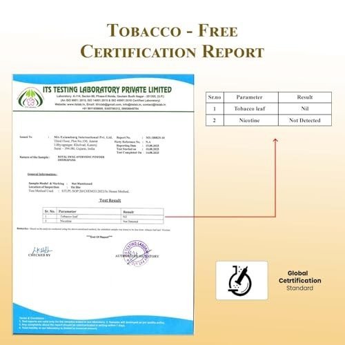 - Ayurvedic Herbal Powder: Composed entirely of natural ingredients such as clove, holy basil (tulsi), cinnamon, green tea, mint or licorice (mulethi), ajwain, and various other herbs.