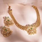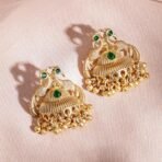 6 reviews for Rubans 22K Gold-Plated Green/Red Stone & Gold Beaded Peacock/Lakshmi Design Traditional Necklace Set – Fast Shipping to USA & Canada