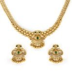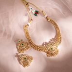 Rubans 22K Gold-Plated Green/Red Stone & Gold Beaded Peacock/Lakshmi Design Traditional Necklace Set – Fast Shipping to USA & Canada
