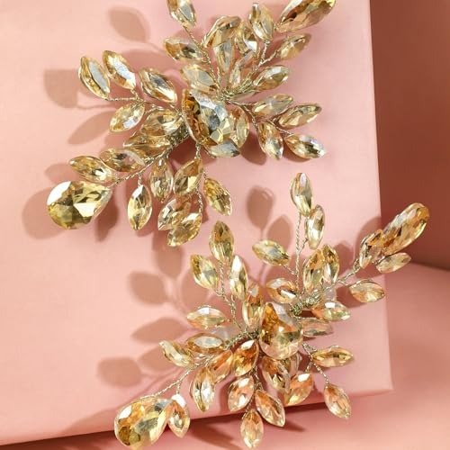 This collection of two meticulously crafted hair adornments showcases floral vine patterns embellished with crystals, available in both gold and silver hues. Tailored for women, these side clips provide a dazzling touch to bridal hairstyles and festive ensembles.