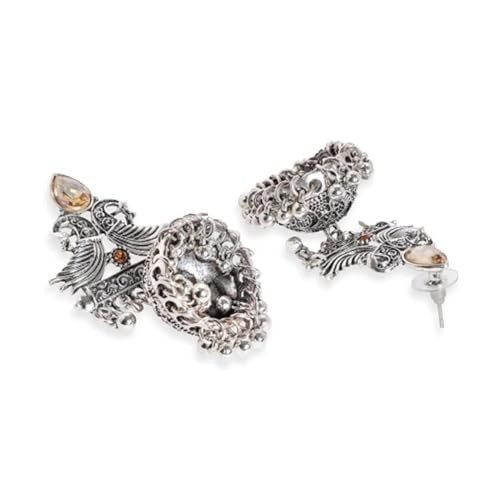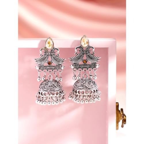 - Jhumka earrings are a classic piece of traditional Indian jewelry, often chosen for festive occasions and celebrations. The earrings shown in the image feature the timeless jhumka style, with their signature bell-shaped danglers and an ornate, decorative top.