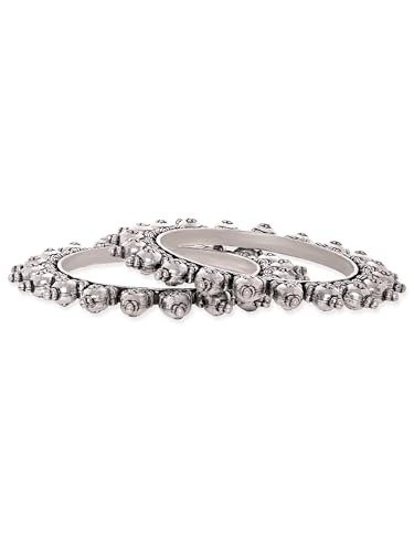 Rubans Womens Set Of 2 Silver-Plated Artisan-Crafted Oxidized Bangles – Fast Shipping to USA & Canada