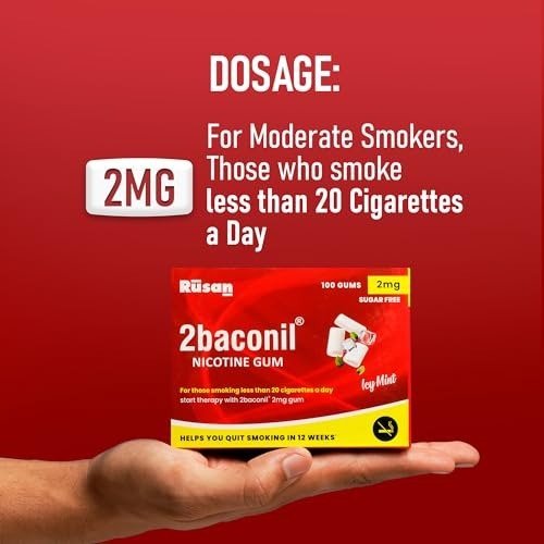 Rusan 2baconil 2mg 100 Nicotine Gums | Icy Mint Flavor | Sugar-Free | Quit Smoking & Chewing Tobacco/Gutkha | Nicotine Replacement Therapy – Fast Shipping to USA & Canada