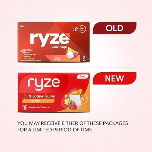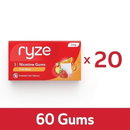 RYZE Fruit Blast Nicotine Gum 2 gm | Pocket-Friendly Pack of 20 (60 gums) | Freedom from Smoking & Tobacco | Easy on Throat | FDA Approved | Sugar Free | Teeth Whitening – Fast Shipping to USA & Canada