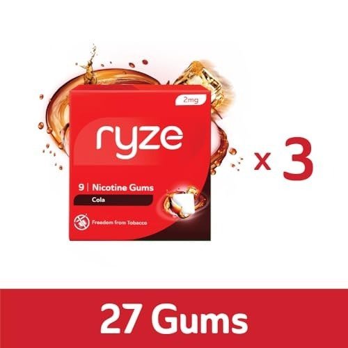 RYZE Nicotine Gum 2mg | 2mg Cola Nicotine Gum | Pack of 3 (27 gums) | Easy on Throat | FDA Approved | Sugar Free | Teeth Whitening Properties – Fast Shipping to USA & Canada