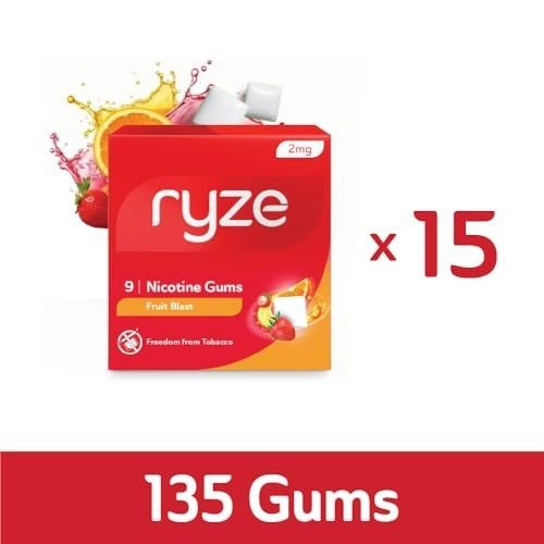 RYZE Nicotine Gum 2mg | Pack of 15 (135 gums) | Fruit Blast | Freedom from Smoking & Tobacco | Easy on Throat | FDA Approved | Sugar Free | Teeth Whitening – Fast Shipping to USA & Canada