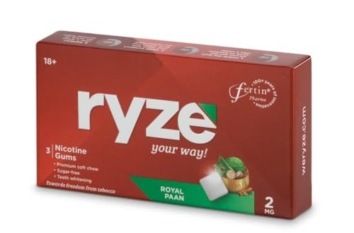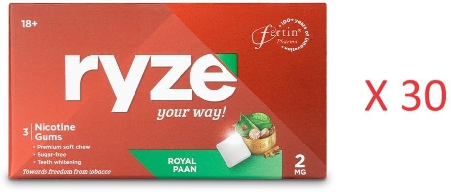 RYZE Nicotine Gum 2mg | Royal Paan | Soft Chew| Aids in Quitting Smoking & Chewing | Smoking Cessation | 3 gums | Single Pack x Pack of 30