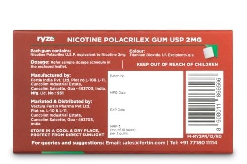 RYZE is a sugar free nicotine gum formulation that provides effective relief from cravings associated with quitting smoking or chewing tobacco by delivering a controlled amount of nicotine to the body. Nicotine is delivered slowly and in small amounts to help sooth your nicotine craving. RYZE nicotine gums can be used as part of a tobacco reduction strategy by smokers and chewers who are not ready to stop smoking abruptly, as a step towards stopping completely. As you follow the recommended dosage schedule, your body gradually adjusts to getting less nicotine over time, until you no longer need any at all.
