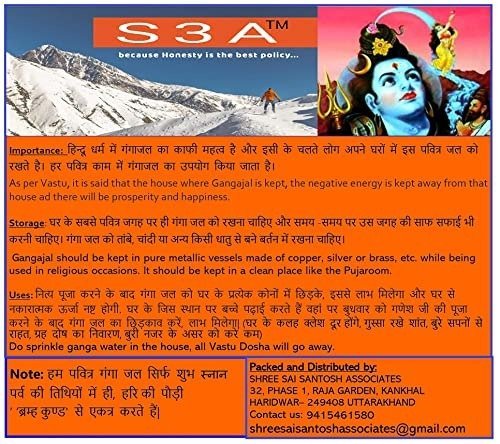 • Experience S3A first, then place your trust in our brand. We source and deliver Holy Ganga Jal exclusively from Haridwar-never from any other city or location. To ensure you receive authentic Gangajal from Haridwar, please verify the dispatch city of your order.