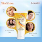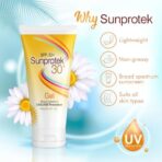 - Sunprotek sunscreen gel shields your skin from damage caused by pollution and other environmental factors.