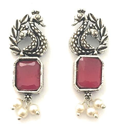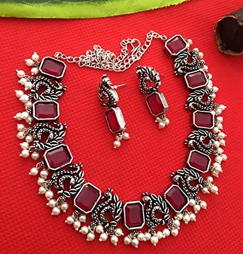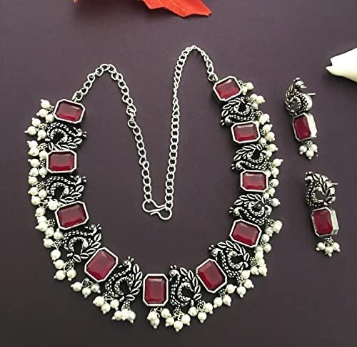 Sasitrends Classic Peacock Designer Oxidized German Silver Stone Studded Jewellery Set with Earring for Women and Girls – Fast Shipping to USA & Canada