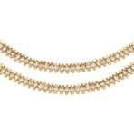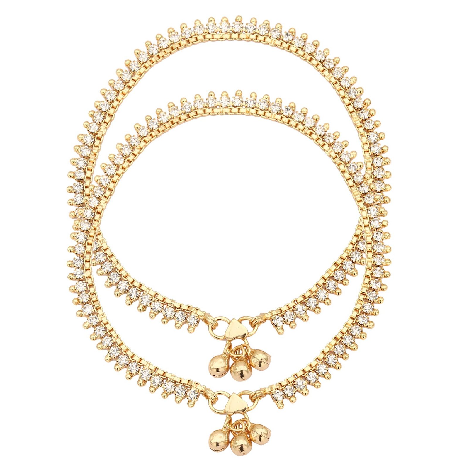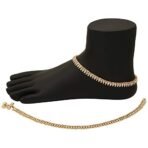 - Chic Heritage for Your Ankles Experience sophistication with our newest micro gold-plated anklets designed for women. Made from brass and coated in 24-carat gold they exude a luxurious gold-like luster. The blend of large and small stone designs introduces a touch of style and brilliance. Ideal for complementing sarees kurtis or even Indo-western outfits.