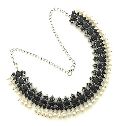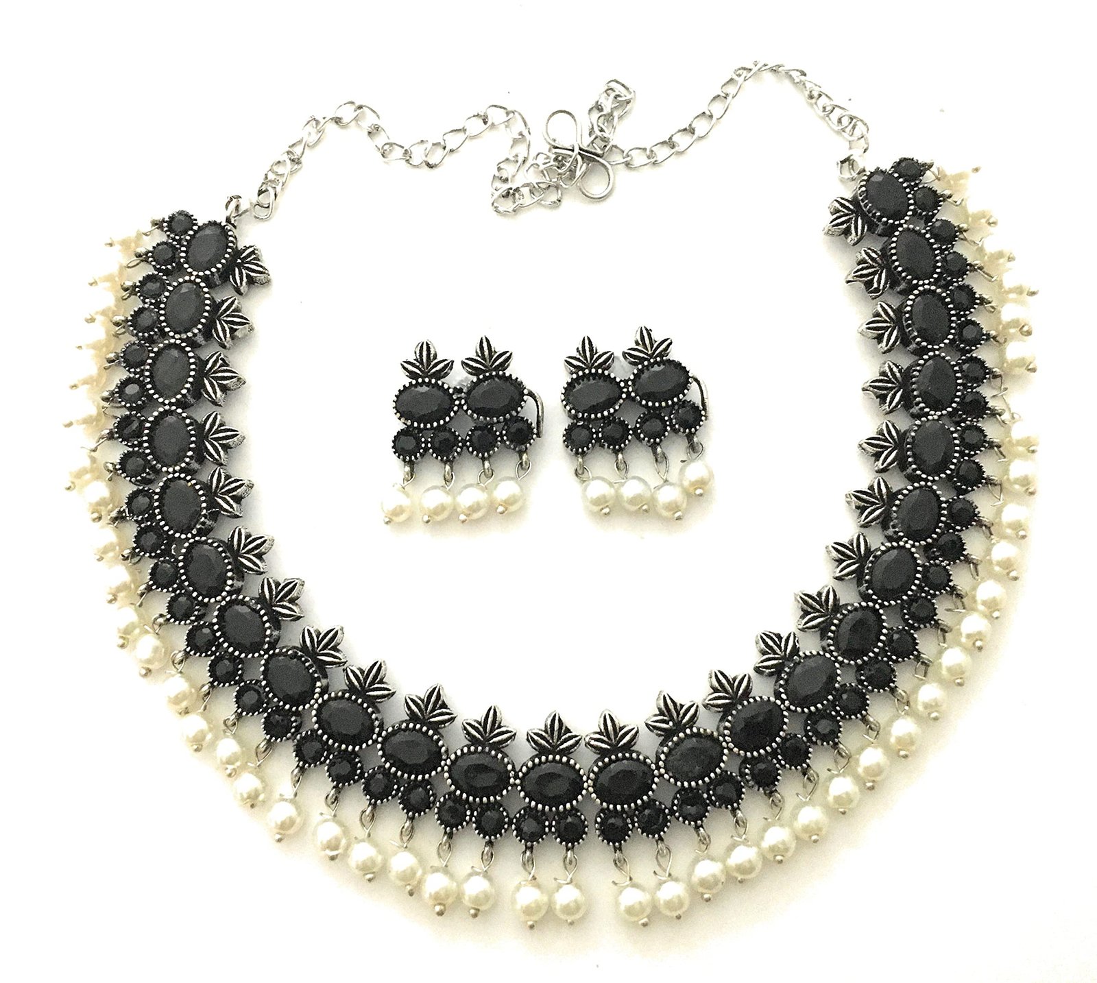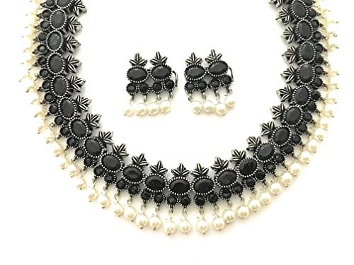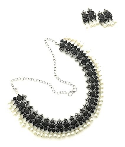 Sasitrends Oxidized German Silver Stone Studded Jewellery Pearl Necklace Set for Women and Girls – Fast Shipping to USA & Canada