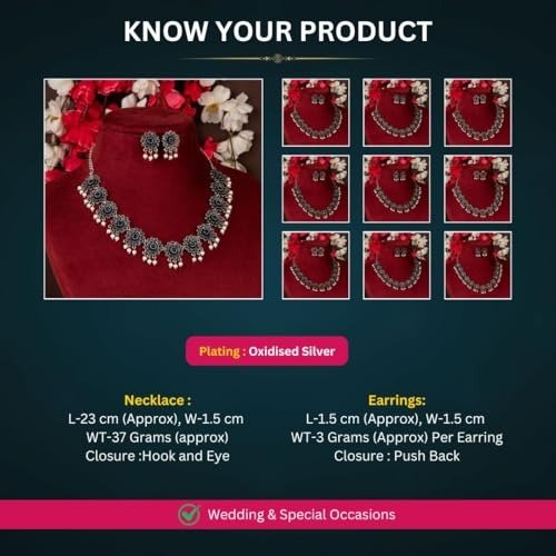 6 reviews for Sasitrends Oxidized Pearl German Silver Stone Studded Jewellery Necklace Set for Women and Girls – Fast Shipping to USA & Canada
