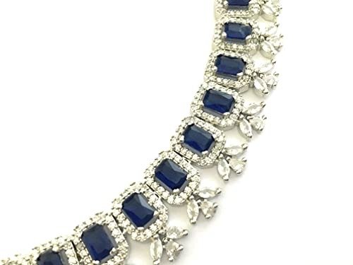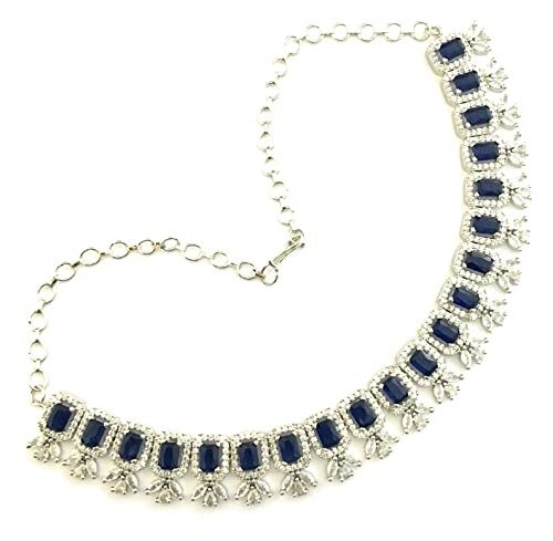 Sasitrends Rhodium Plated Rectangle Shaped Silver Toned American Diamond Stone Studded Necklace with Earring Jewellery Set for Women and Girls – Fast Shipping to USA & Canada