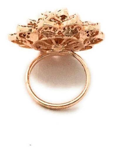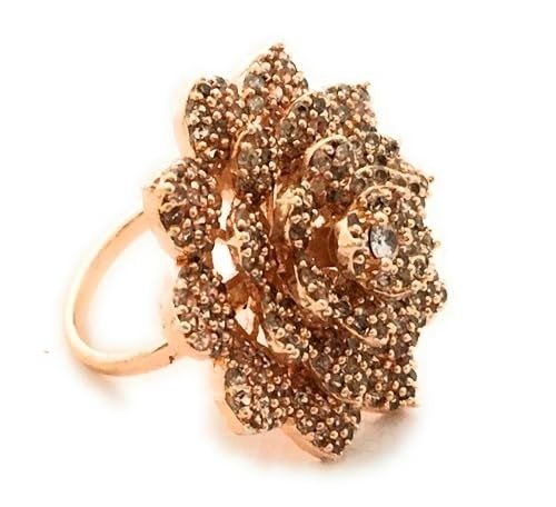 - Superior Quality Craftsmanship: Embrace the allure of our American Diamond ring, a captivating piece expertly crafted from high-grade brass. This adjustable ring features a floral motif and is adorned with luxurious rose gold plating, complemented by shimmering ad stones. It radiates an enchanting brilliance.
