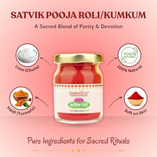 - Entirely Pure & Natural – Made through the age-old Haldi (turmeric) and Lime process, this Satvik kumkum contains no artificial chemicals, guaranteeing genuine purity, safety, and authenticity for your pooja rituals and sacred ceremonies.