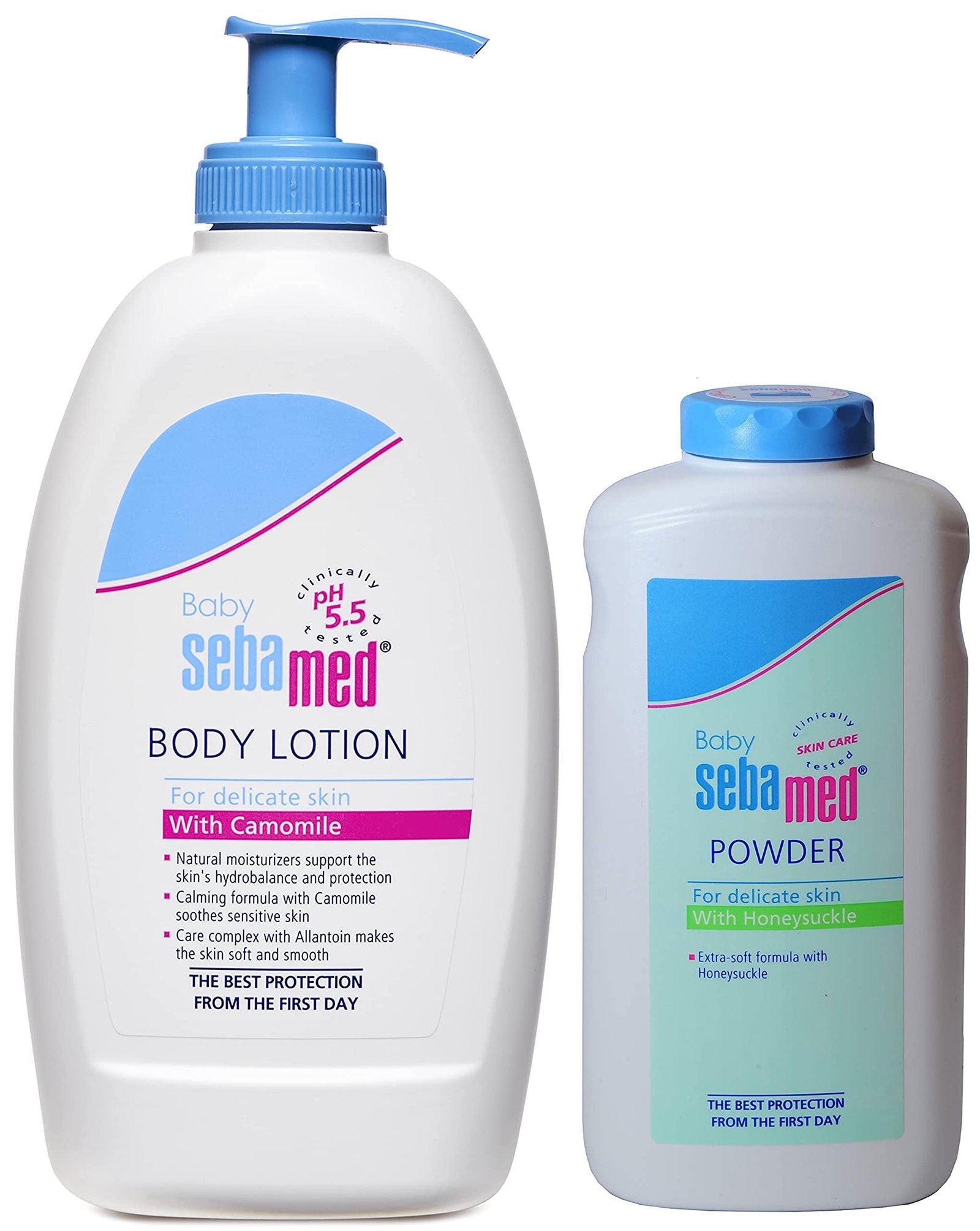 SebaMed Baby Body Lotion, For All Skin Types, 400 ml & Baby Powder with Honeysuckle 200g – Fast Shipping to USA & Canada