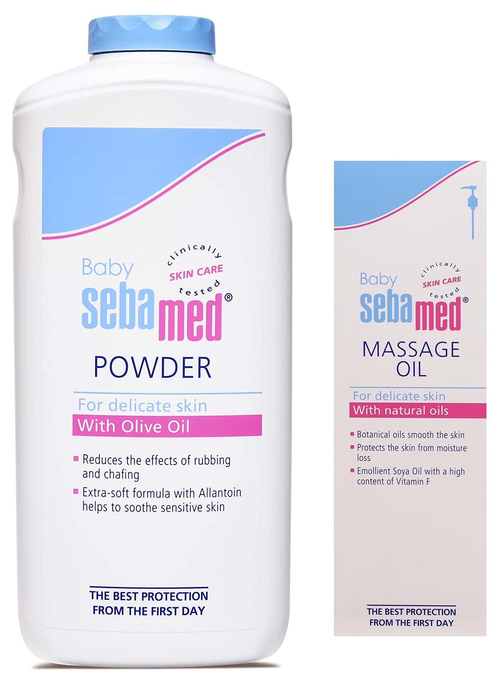 SebaMed Baby Powder, 200g & Baby Massage Oil, 150ml Combo – Fast Shipping to USA & Canada