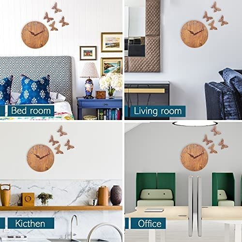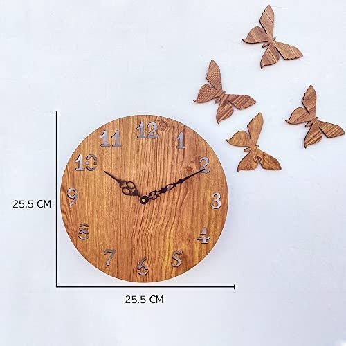 Sehaz Artworks Analog Wall Clock for Home and Kitchen | Wall Clock for Home Stylish Latest | Butterflies Manufactured Wood 10 Inch Designer – Beige – Fast Shipping to USA & Canada