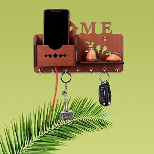 - This ideal wooden key holder for the home features five hooks and ample space for organizing your belongings. It serves as both a stylish wall-mounted mobile holder and a comprehensive key organizer, making it a great addition to your home Decor .