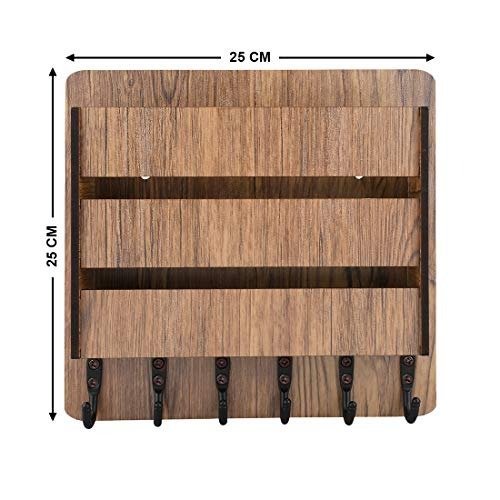 Sehaz Artworks Letter Mail Holder with Key Hooks | Key Holder for Wall| Wall Shelves | Furnitures for Home Decor Items | Wall Decor (25 cm x 25 cm, Beige) – Fast Shipping to USA & Canada