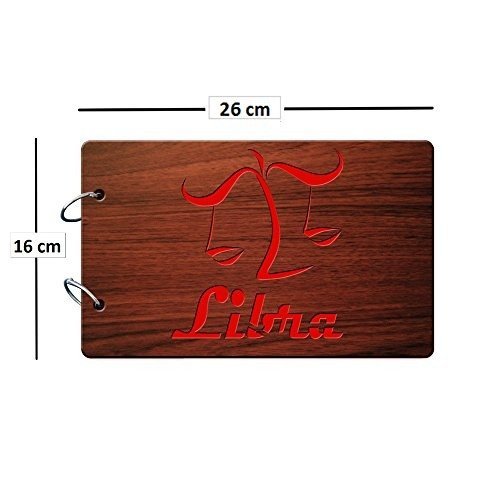 Sehaz Artworks Libra Zodiac Sign Wooden Scrapbook Photo Album for memorable Gift on Boyfriend Girlfriend Birthdays, Valentines day, Anniversary, Cute Gift for couples (22 cm x 16 cm x 4 cm, Brown) – Fast Shipping to USA & Canada