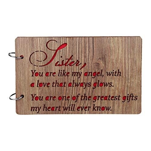 Sehaz Artworks Sister-Glows Wooden Scrapbook Photo Album for Memorable Gift on Brother, Sister, Cousins, Bro Sis, Birthdays, Valentines Day, Anniversary (26 cm x 16 cm x 4 cm,) – Fast Shipping to USA & Canada