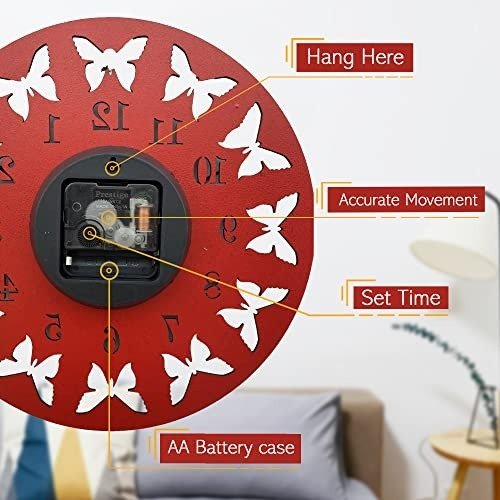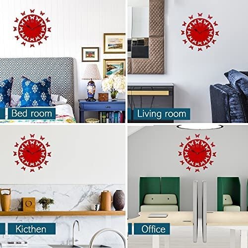 Sehaz Artworks Wooden Wall Clock for Home Stylish Wall Clocks for Living Room – 12 Butterflies Red – Fast Shipping to USA & Canada