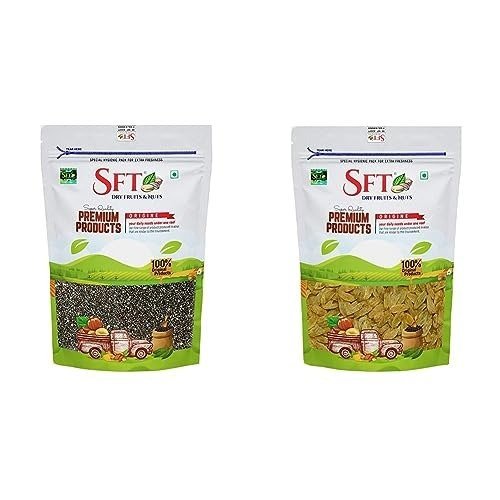 SFT Chia Seeds 1 Kg & SFT Raisins Afghani Green Long (Kishmish) Seedless, Dry Grapes 1 Kg – Fast Shipping to USA & Canada