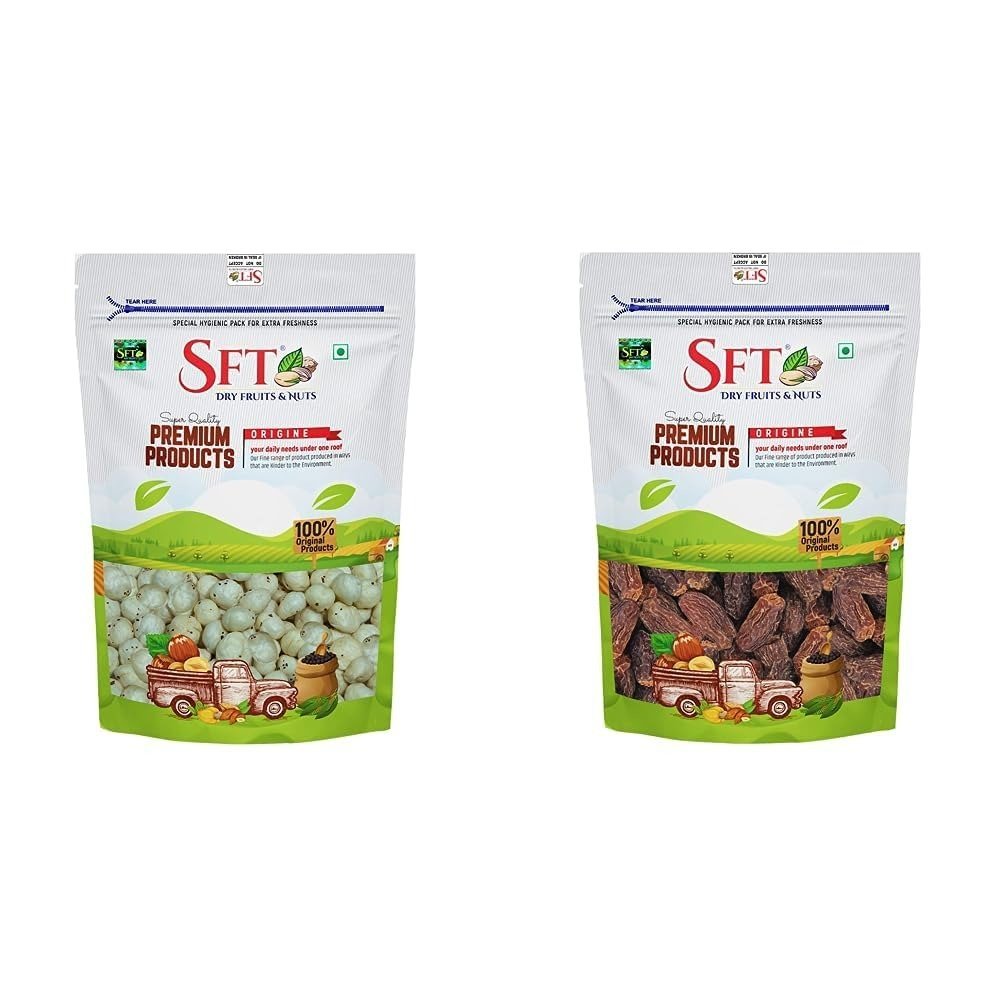 SFT Fox Nut (Phool Makhana) Lotus Seed 1 Kg & SFT Dried Dates Brown,Black/Sukha Khajoor (Kala Chuara) 1 Kg – Fast Shipping to USA & Canada