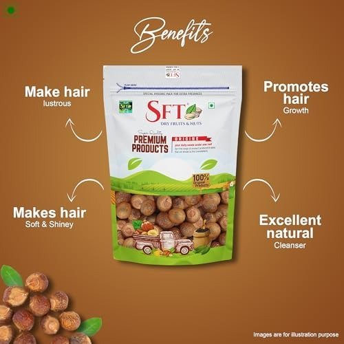 SFT places great importance on building our reputation through the excellence of our products. We have journeyed nationwide to carefully select premium products at the most competitive prices. With over 22 years of experience in the industry, SFT has established partnerships with all leading offline retail chains. Our products undergo stringent quality checks at every stage, from sourcing to packaging. We are committed to offering consumers the broadest possible selection, and our ever-growing assortment now includes a wide variety of dry fruits, spices, and nuts. We ensure consistent taste and guaranteed quality year-round, and we are confident that our products will become your favorites after just one purchase. SFT reetha is effective in minimizing dandruff and white flakes due to its natural cleansing properties for hair. Simply apply the liquid to your scalp, leave it on for a few minutes, and then rinse thoroughly with clean water.