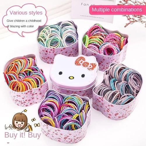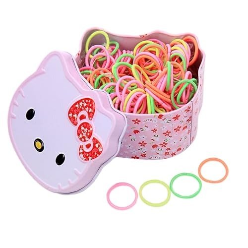 - This set features 100 pieces of hair rubber bands and ponytail holders, all packaged in an adorable Hello Kitty box. They offer excellent elasticity and come in a variety of styles without causing any harm to the hair. These hair bands are ideal for infants, as they are so lightweight that your little one won’t even notice they have something in their hair.