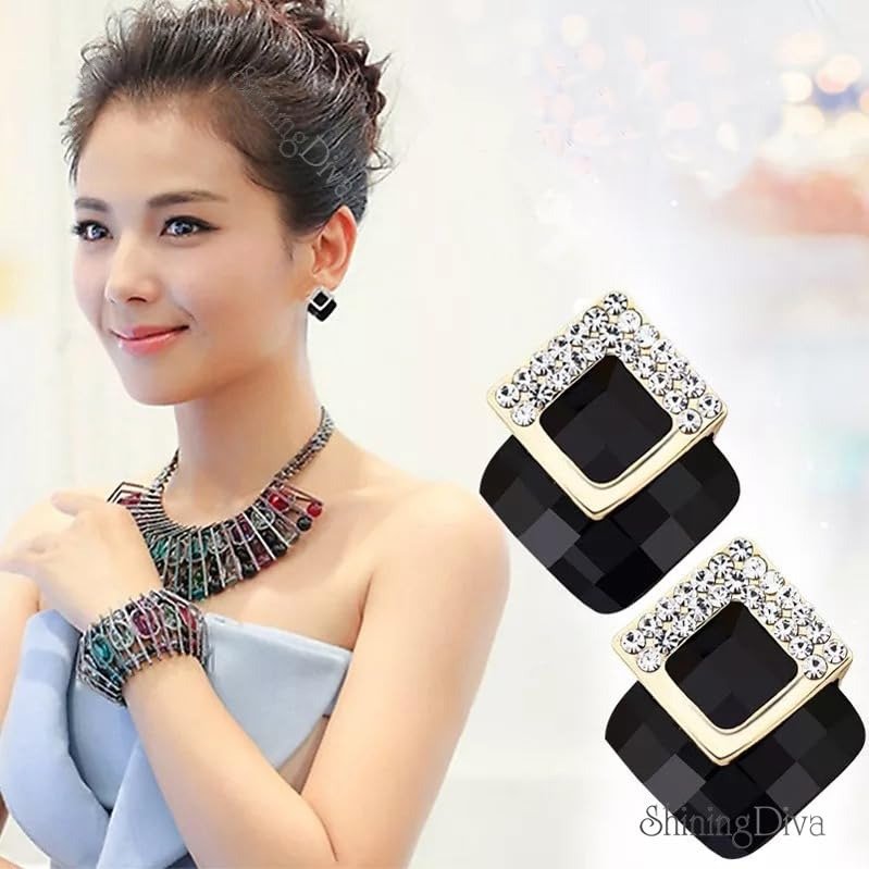 Shining Diva Fashion 18k Gold Plated Austrian Crystal Earrings for Women & Girls | Luxury Rhinestone Square Italian Designer Earrings | Latest Stylish Fancy Zircon Party Earring – Fast Shipping to USA & Canada