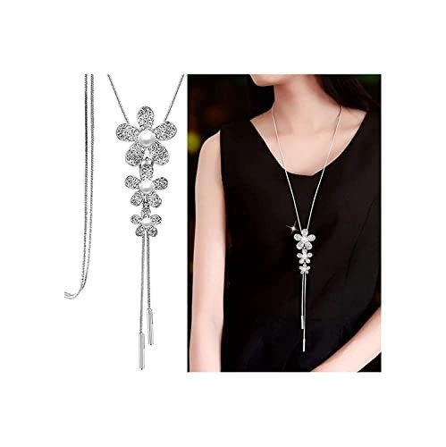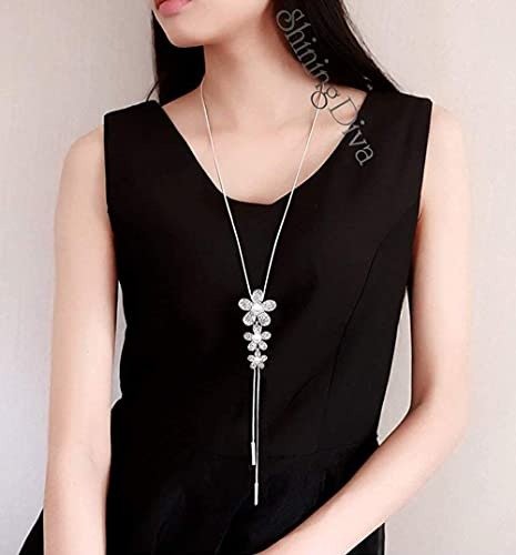 Shining Diva Fashion Crystal Flower Stylish Long Chain Pendant Necklace for Women and Girls – Fast Shipping to USA & Canada