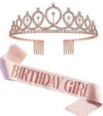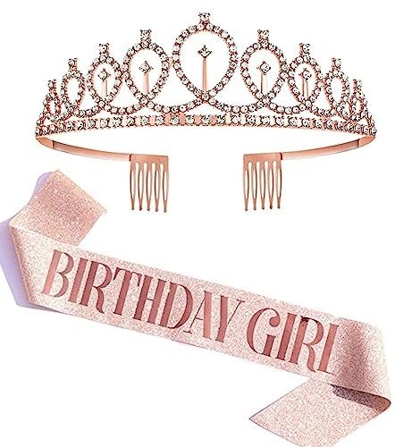 Chic birthday sash and crown designed for girls and women by the renowned brand Shining Diva. An unforgettable birthday present for girls, women, children, wives, sisters, best friends, and teenagers. The newest tiara for women.