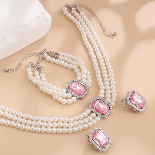 Shining Diva Fashion Latest Stylish Design Crystal Pearl Bracelet Earrings Necklace Jewellery Set for Women – Fast Shipping to USA & Canada