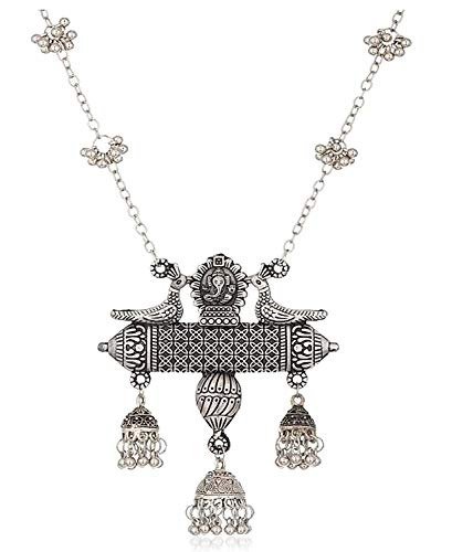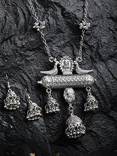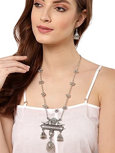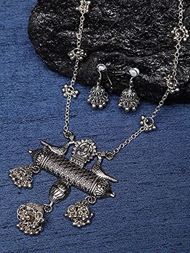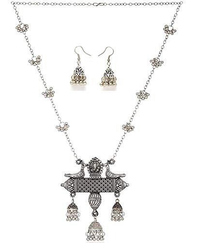 Shining Diva Fashion Latest Stylish Design Fancy Oxidised Silver Afghani Chain Pendant Earrings Necklace Jewellery Set for Women (Silver) (12013s) – Fast Shipping to USA & Canada