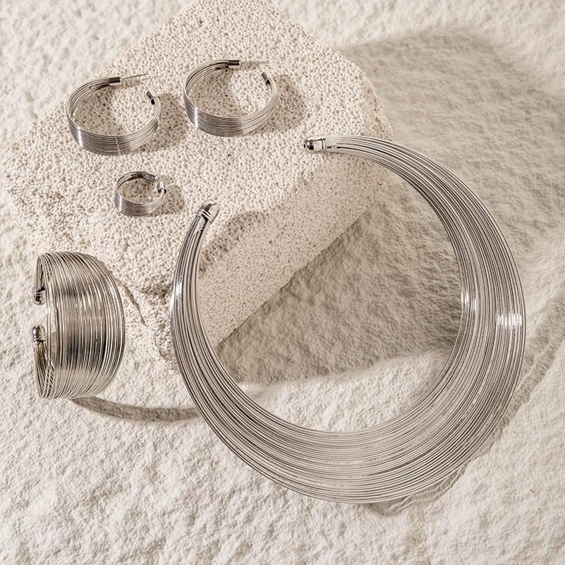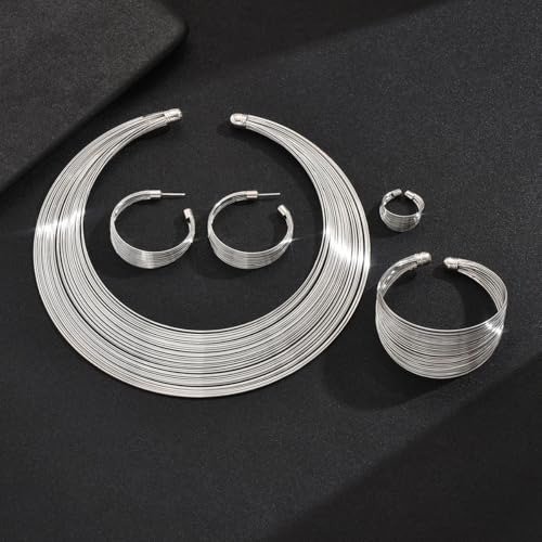 Shining Diva introduces its latest collection of chic jewelry sets. This silver-plated ensemble includes a necklace, bracelet, ring, and earrings. Perfect for brides and party-goers alike, this elegant jewelry set complements any outfit beautifully. The contemporary design makes it an excellent choice for weddings or festive occasions.