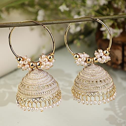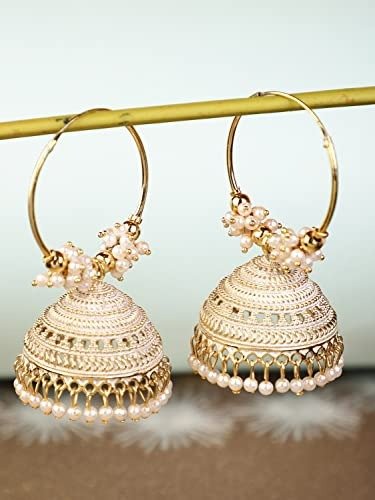 - Introducing the newest fashionable gold-plated traditional hoop jhumki earrings from the renowned brand Shining Diva.