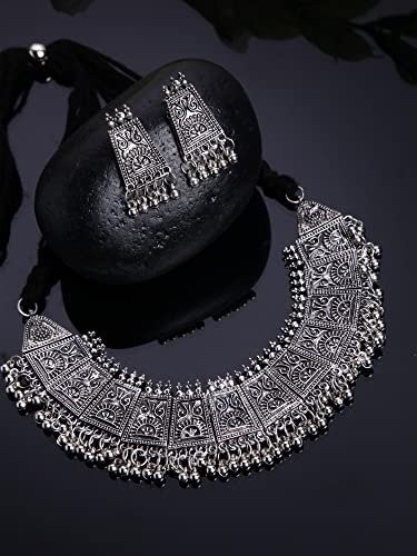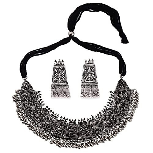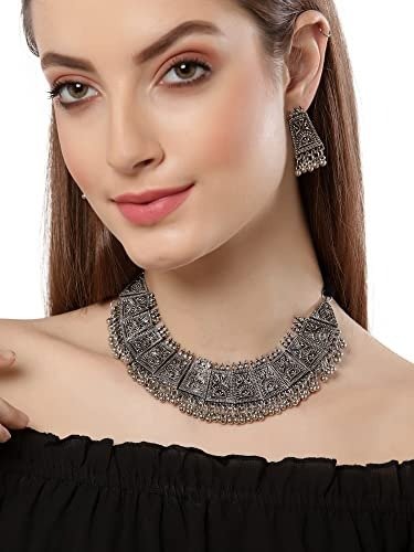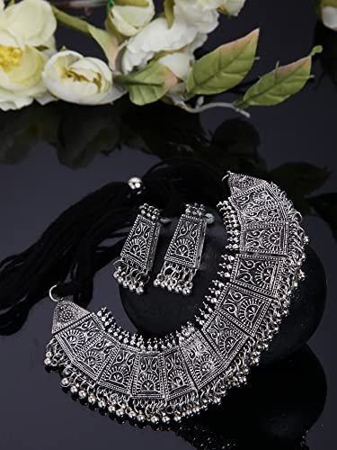 Shining Diva Fashion Latest Stylish Traditional Oxidised Silver Necklace Jewellery Set for Women (13108s) – Fast Shipping to USA & Canada