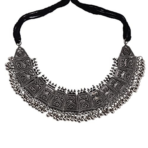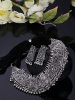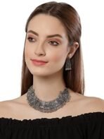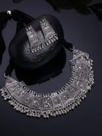 Shining Diva introduces its latest oxidized silver jewelry set, featuring a chic necklace designed for women. This versatile oxidized necklace set is perfect for both casual outings and wedding celebrations, crafted from high-quality materials that exude style and complement any outfit. The traditional tribal Afghani Boho choker necklace set is an excellent choice for festive occasions.