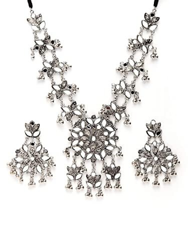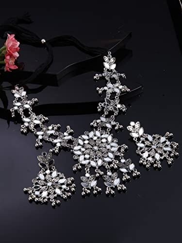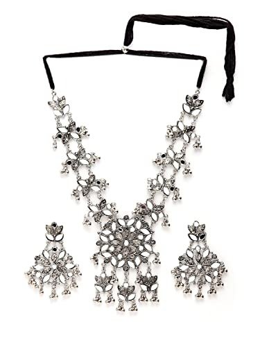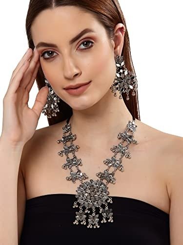 Shining Diva introduces its latest collection of oxidized silver jewelry, featuring a chic necklace set designed for women. This versatile oxidized necklace set is perfect for both casual outings and wedding celebrations, crafted from high-quality materials that exude style and complement any outfit. The traditional tribal Afghani Boho choker necklace set is an excellent choice for festive occasions.
