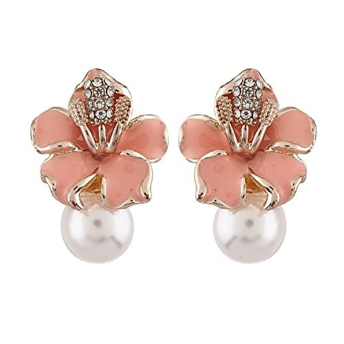 Introducing the latest gold-plated crystal pearl earrings designed for women. Shining Diva Fashion Jewellery showcases these chic Western-style party earrings, perfect for both women and girls. This designer pair of contemporary stud earrings will make you feel like a true diva. The versatile color enhances any outfit and serves as a striking statement piece for various occasions.
