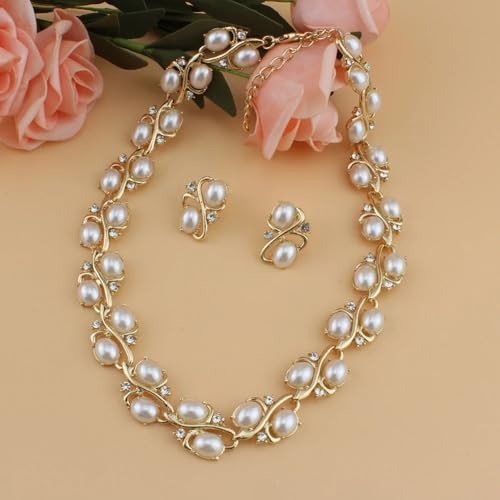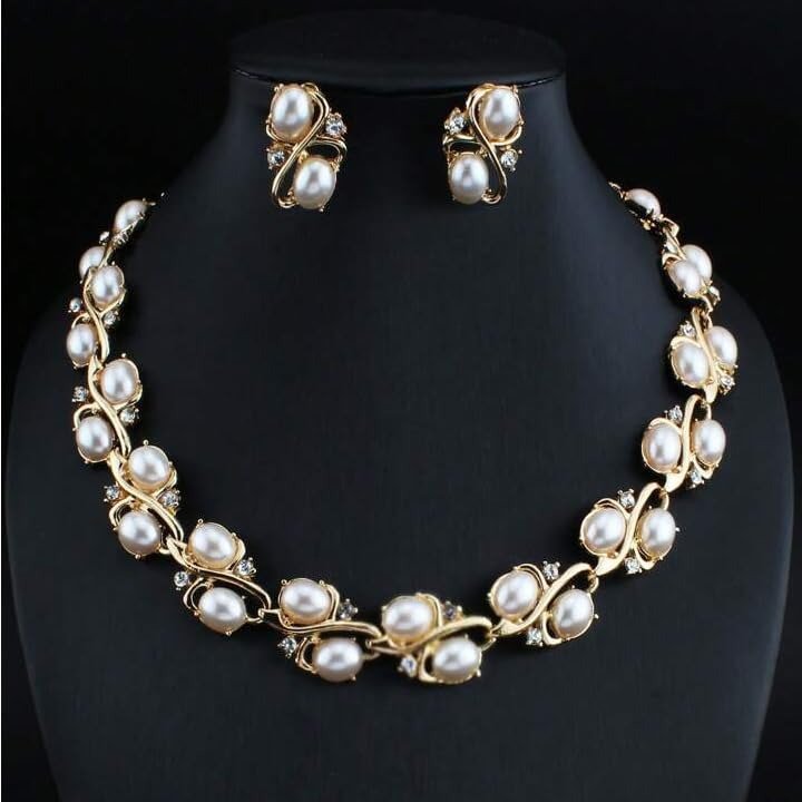 - Chic and contemporary simulated pearl necklace accompanied by matching earrings. This jewelry ensemble enhances both traditional and modern outfits effortlessly. The versatile color harmonizes with a variety of ensembles and can serve as a striking statement accessory for any event. Perfect for parties and festive celebrations, this necklace set is a must-have.