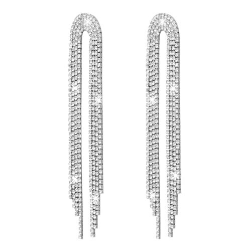 Shining Jewel crystal & Ad Silver Plated Fancy Western Style Cocktail Chandelier Long Earrings For Women (SJE_43_S) – Fast Shipping to USA & Canada