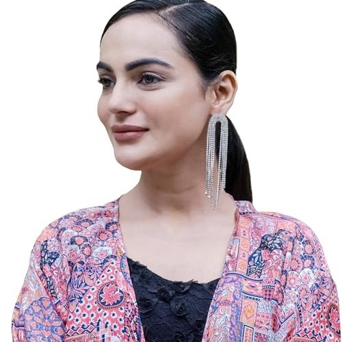6 reviews for Shining Jewel crystal & Ad Silver Plated Fancy Western Style Cocktail Chandelier Long Earrings For Women (SJE_43_S) – Fast Shipping to USA & Canada