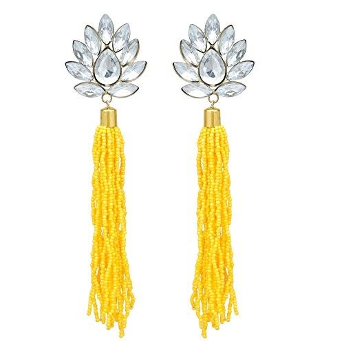 7 reviews for Shreyadzines Beaded Tassels Long Dangle Statement Cocktail Party Stone Earrings Jewelry for Women and Girls – Fast Shipping to USA & Canada