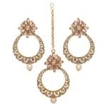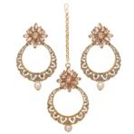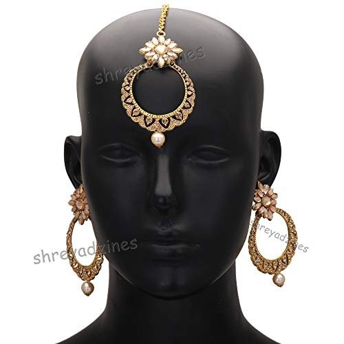 Shreyadzines CZ Stones Faux Pearl Wedding chandbali Earrings maang tika Set for Women and Girls (Gold) – Fast Shipping to USA & Canada